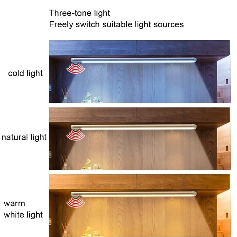 Φωτιστικό ντουλαπιού LED με αισθητήρα κίνησης, έξυπνο φωτιστικό νυχτός για το σπίτι, 3 χρώματα, Μήκος: 40cm (Επαναφορτιζόμενο)