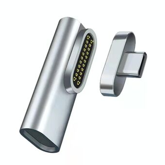 100W USB-C / Type-C Female to 20 Pin Magnetic USB-C / Type-C Male Elbow Adapter (Silver)