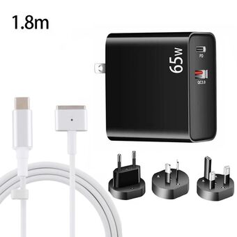 Προσαρμογέας Φόρτισης Φορητού Υπολογιστή PD-65W USB-C / Type-C + QC3.0 USB + Καλώδιο Δεδομένων USB-C / Type-C σε MagSafe 2 / T Head 1.8μ, Ευρωπαϊκό Βύσμα / Αυστραλιανό Βύσμα / Βρετανικό Βύσμα / Αμερικανικό Βύσμα (Μαύρο)