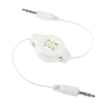 Καλώδιο ήχου Aux ανασυρόμενο 3,5mm, συμβατό με τηλέφωνα, tablet, ακουστικά, MP3 player, στερεοφωνικά αυτοκινήτου/σπιτιού & άλλα, Μήκος: 11cm έως 80cm (Λευκό)