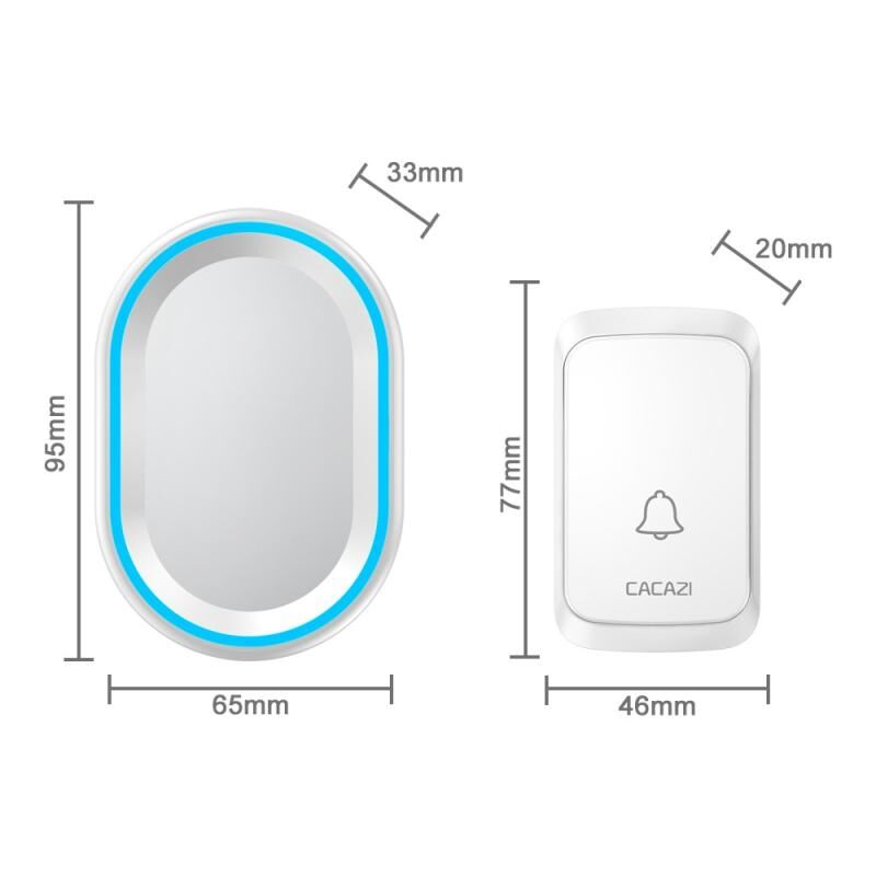 8. Αρχή λειτουργίας: Ο πομπός εγκαθίσταται έξω από την πόρτα, ο δέκτης εγκαθίσταται στην πρίζα, πατήστε τον πομπό για να χτυπήσει η κουδούνια, ο δέκτης χτυπά αμέσως και αναβοσβήνει για να σας υπενθυμίσει