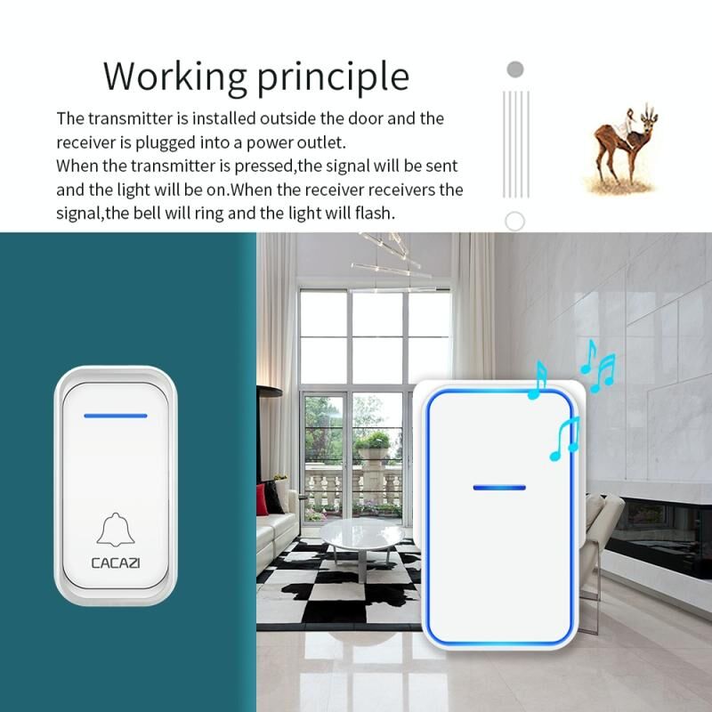 CACAZI Home Smart Digital Wireless Doorbell Remote Electronic Doorbell Elderly Pager, Style: EU Plug(White) (CACAZI)