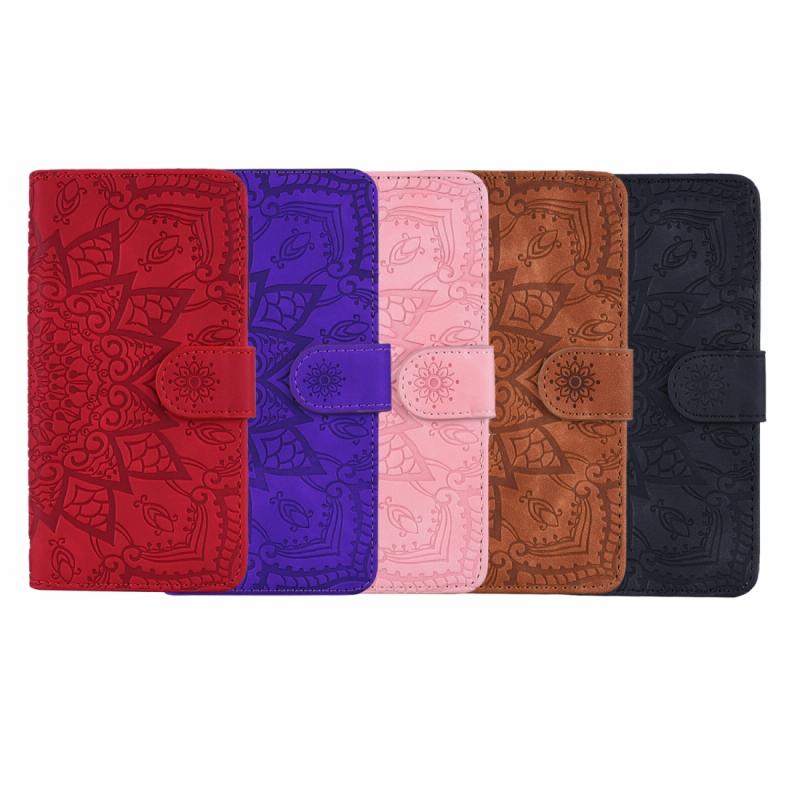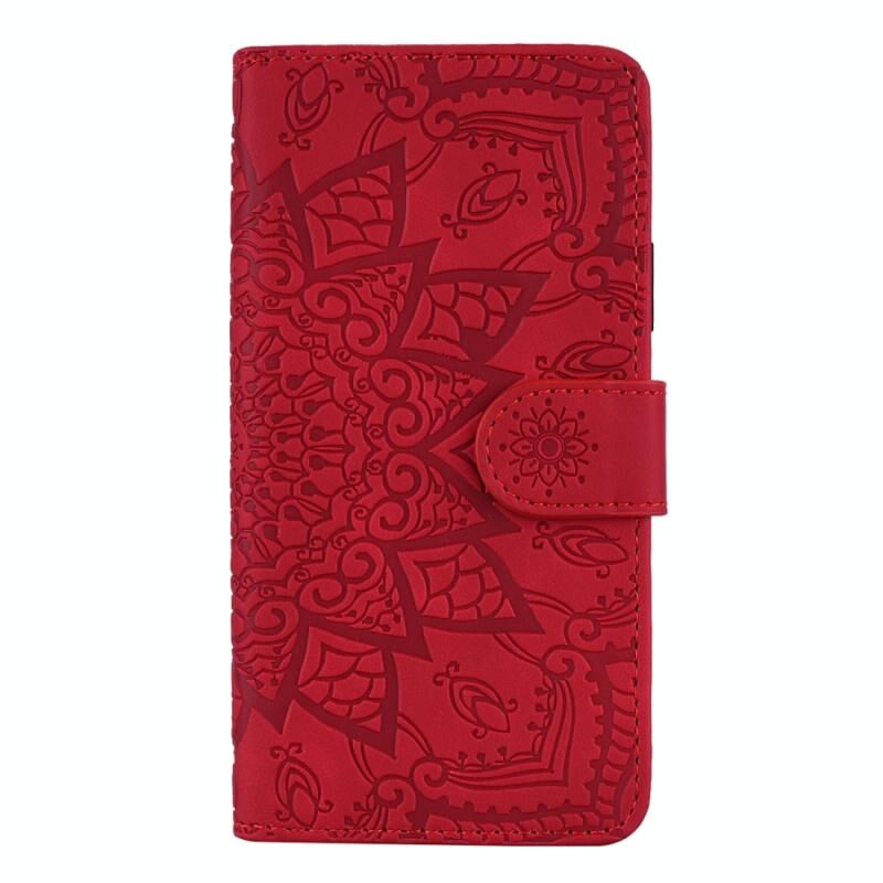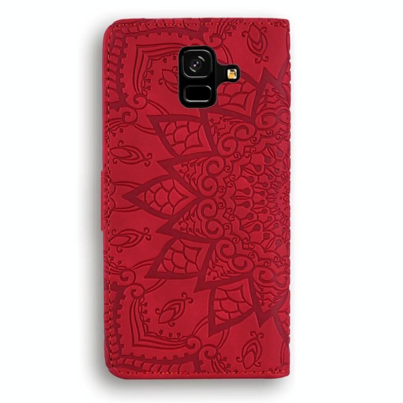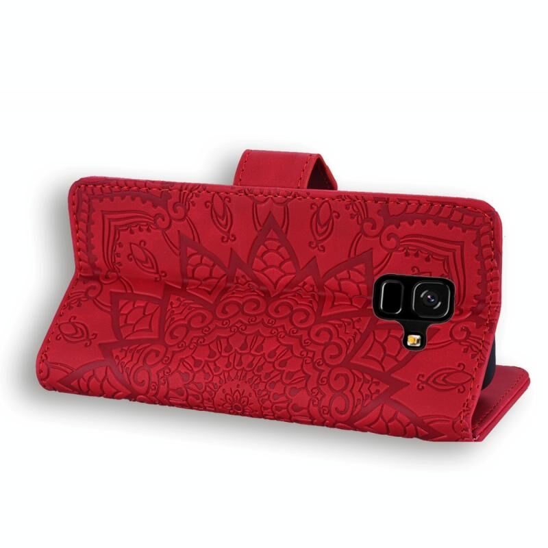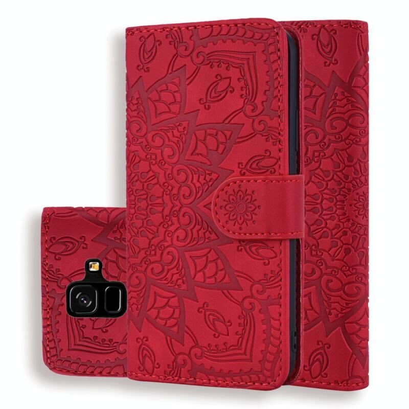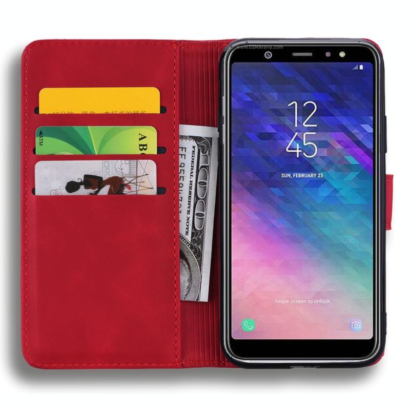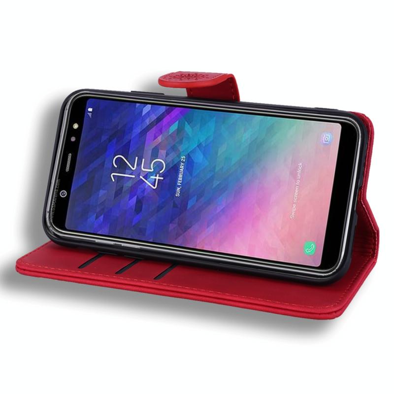 Θήκη δέρματος με ανάγλυφο σχέδιο μοσχαριού, διπλή πτυχή, με πορτοφόλι, θήκη και υποδοχές καρτών για Galaxy A6 (2018) (Κόκκινο)