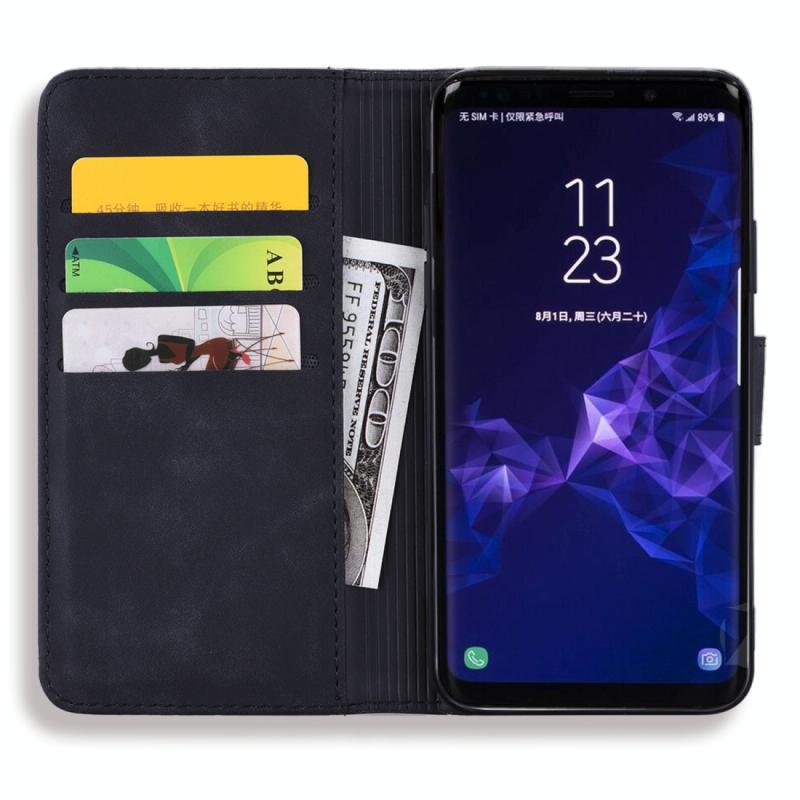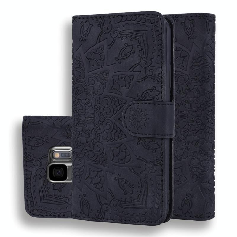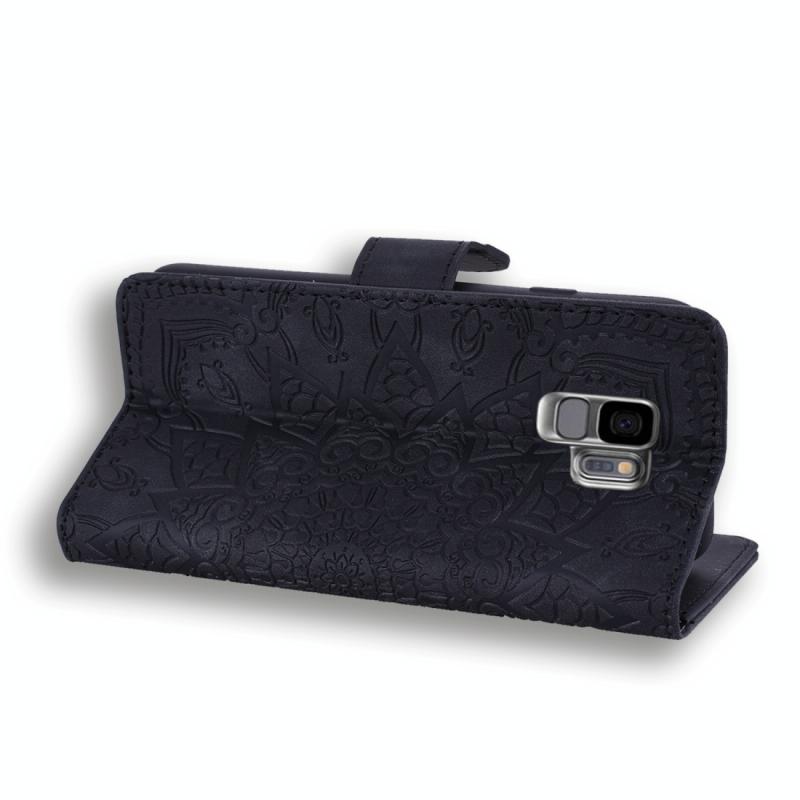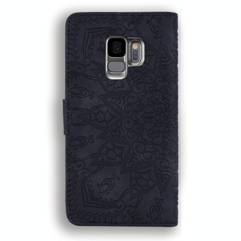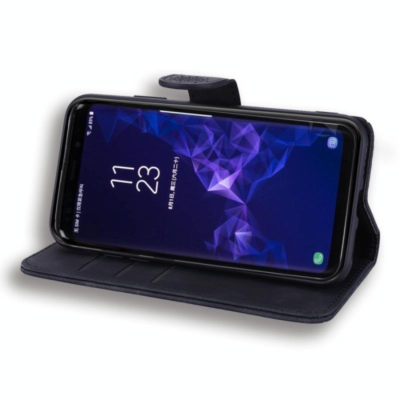 Calf Pattern Double Folding Design Embossed Leather Case with Wallet & Holder & Card Slots for Galaxy S9(Black)