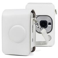 Full Body Camera Retro PU Leather Case Bag with Strap for FUJIFILM instax mini Liplay (White)