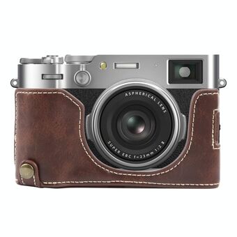 Για FUJIFILM X100VI Γυαλιστερό PU δέρμα φωτογραφική μηχανή μισή βάση θήκης (καφέ)
