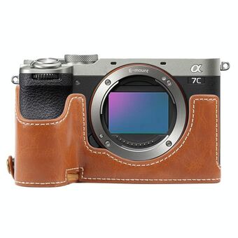 Για Sony ILCE-7CM2 / Alpha 7C II Γυαλιστερό PU δέρμα φωτογραφική μηχανή μισή βάση θήκη (καφέ)