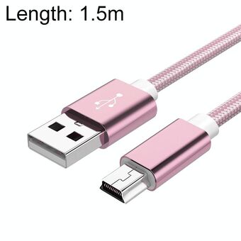5 PCS Mini USB to USB A Woven Data / Charge Cable for MP3, Camera, Car DVR, Length:1.5m(Rose Gold)