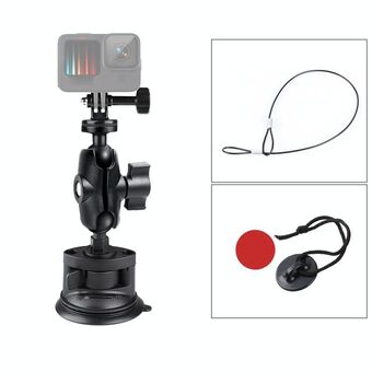 Single Suction Cup Mount Holder with Tripod Adapter & Steel Tether & Safety Buckle (Black)