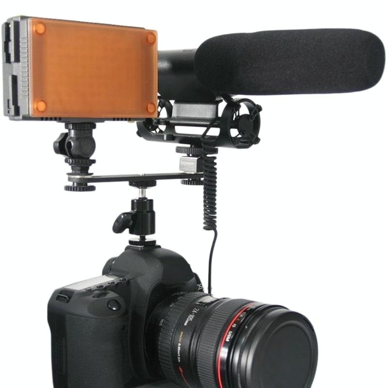 4. On the two ends of the bracket, you can mount your Speedlite, video light, fill light, camera, hot shoe, and proper microphone holder.