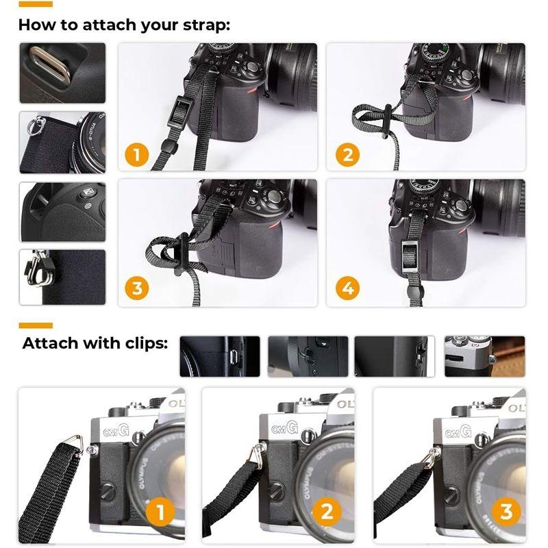 3. The universal strap with quick release buckles fits for all brands of etc. DSLR SLR cameras, while it can be used for other equipments like phones, binoculars, monoculars, rangefinders, tools, and so on.
