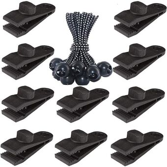 Windproof Canopy Fixed Tent Clip Rope Buckle Set 10 Clips+10 Elastic Ropes+10 Black Buckles