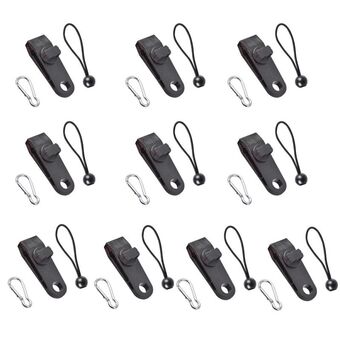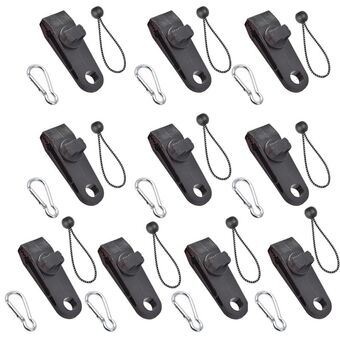 Outdoor Windproof Canopy Fixed Tent Clip Rope Buckle Set 10 Clips+10 Black Ropes+10 Silver Buckles