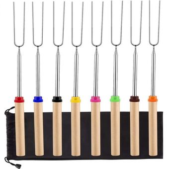 1124-7 Retractable Wooden Stick Marshmallow BBQ Fork, Spsc: Drawstring Bag