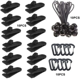 Canopy Fixed Tent Clip Rope Buckle Set 10 Clips+10 White Dot Ropes+10 Black PP Fast Hangings
