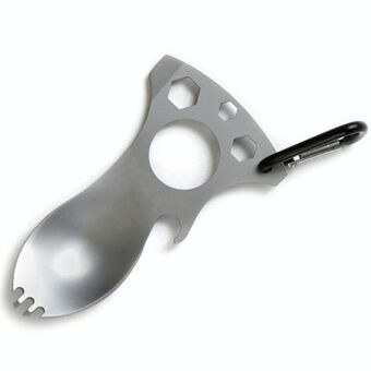 Outdoor Multifunctional Camping Spoon Stainless Steel Tableware Portable Picnic Tableware Fork And Spoon(Light Grey)