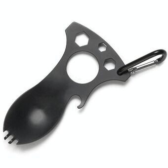 Outdoor Multifunctional Camping Spoon Stainless Steel Tableware Portable Picnic Tableware Fork And Spoon(Black)