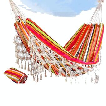 Outdoor Camping Hammock Tassel Polyester Cloth Hammock(2 Yellow And Pink Striped Tassel)