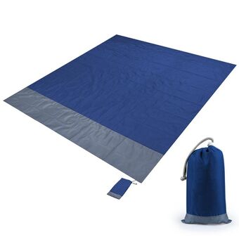 Polyester Waterproof Plaid Cloth Pocket Picnic Mat Outdoor Camping Beach Mat, Size: 2.1 x 2m(Royal Blue + Gray)