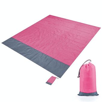 Polyester Waterproof Plaid Cloth Pocket Picnic Mat Outdoor Camping Beach Mat, Size: 2.1 x 2m(Pink + Gray)