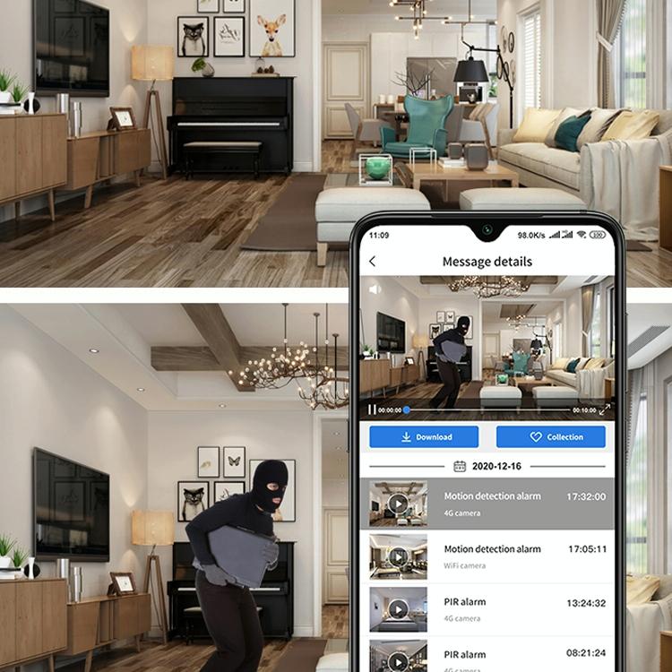 3. Two-Way Audio and App Viewing: With the built-in microphone and speaker, the mini S20 battery inside camera can be used remotely at any time.
