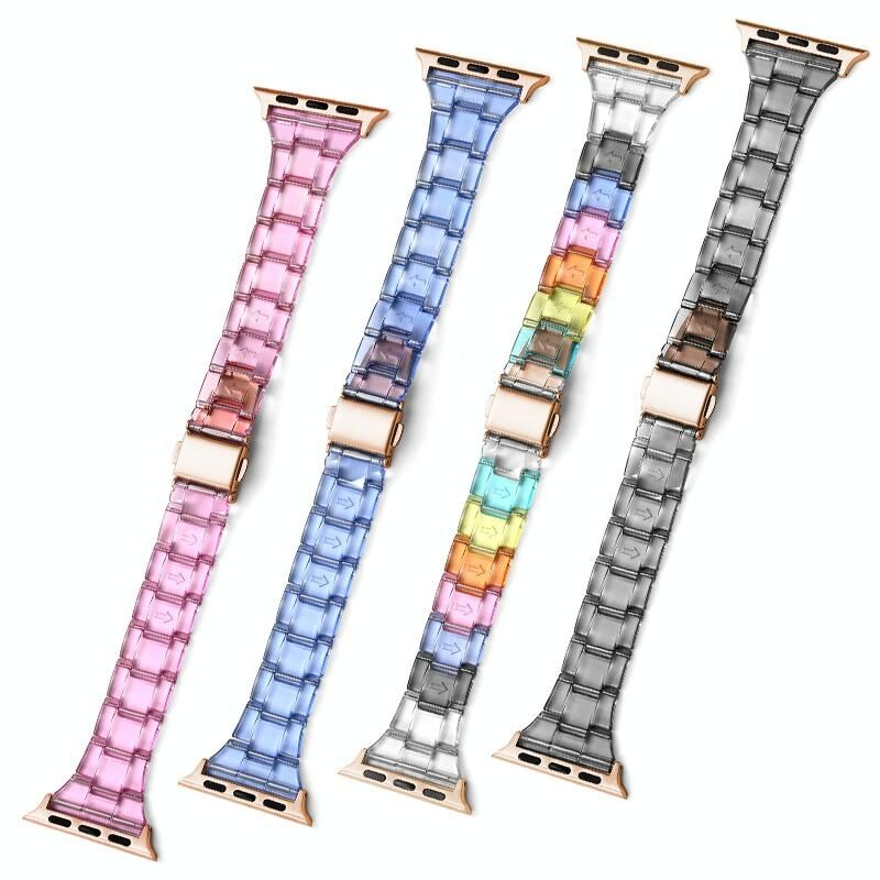 Candy Color Three-Bead Small Waist Strap For Apple Watch Series 9&8&7 41mm / SE 3&SE 2&6&SE&5&4 40mm / 3&2&1 38mm(Transparent)