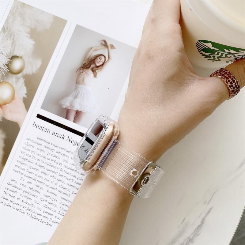 Candy Color Transparent TPU Watch Band For Apple Watch Series 7 41mm / & 6 & SE & 5 & 4 40mm (Rose Red)