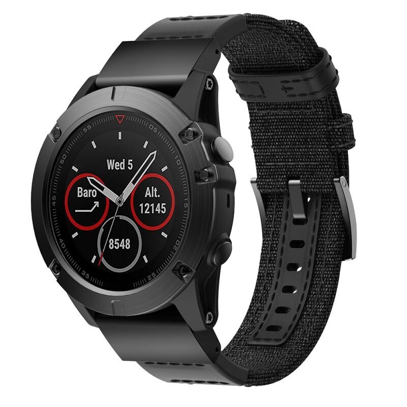 Λουρί ρολογιού από καμβά και δέρμα για Garmin Fenix5x Plus Fenix3, Μέγεθος λουριού καρπού: 150+110mm (Μπλε)
