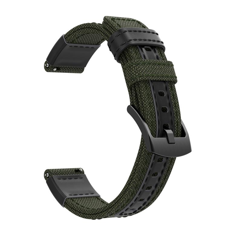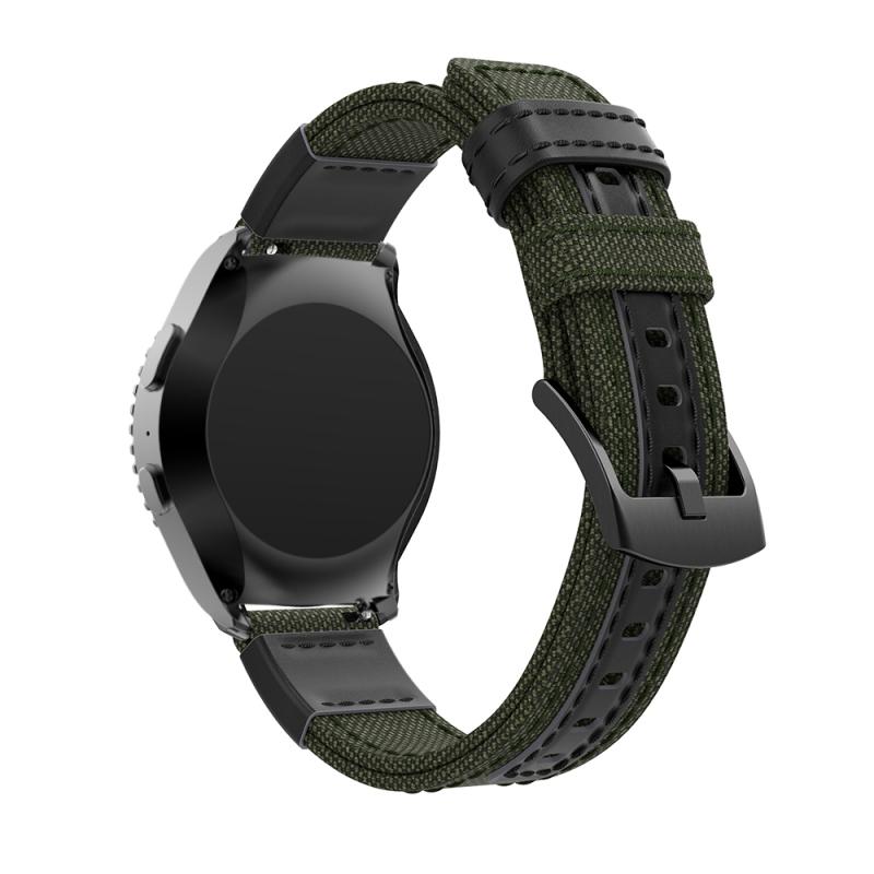 Canvas and Leather Watch Band for Samsung Gear S2/Galaxy Active 42mm, Wrist Strap Size:135+96mm(Army Green)