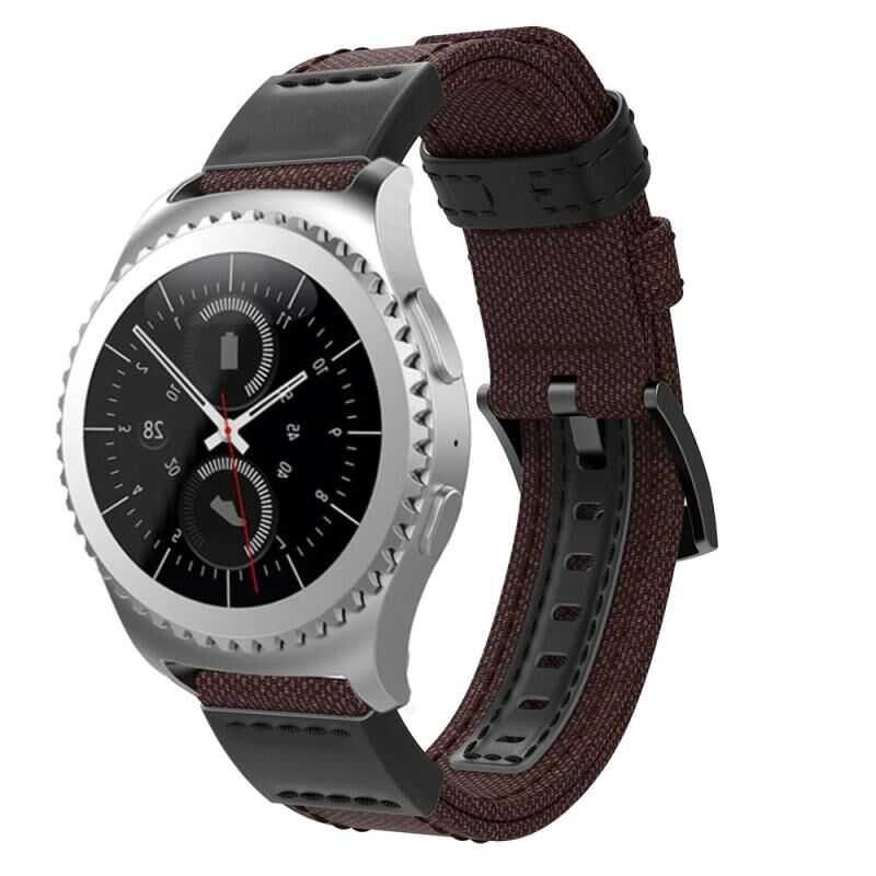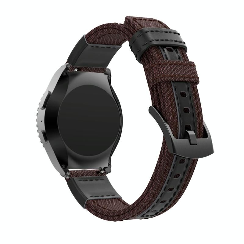 Canvas and Leather Watch Band for Samsung Gear S2/Galaxy Active 42mm, Wrist Strap Size:135+96mm(Brown)