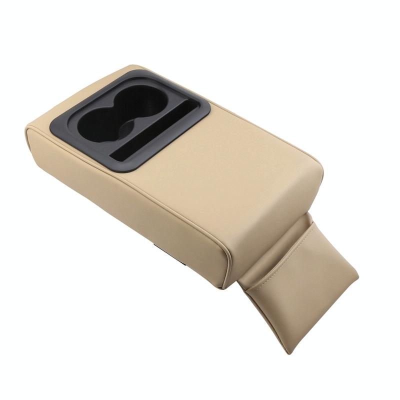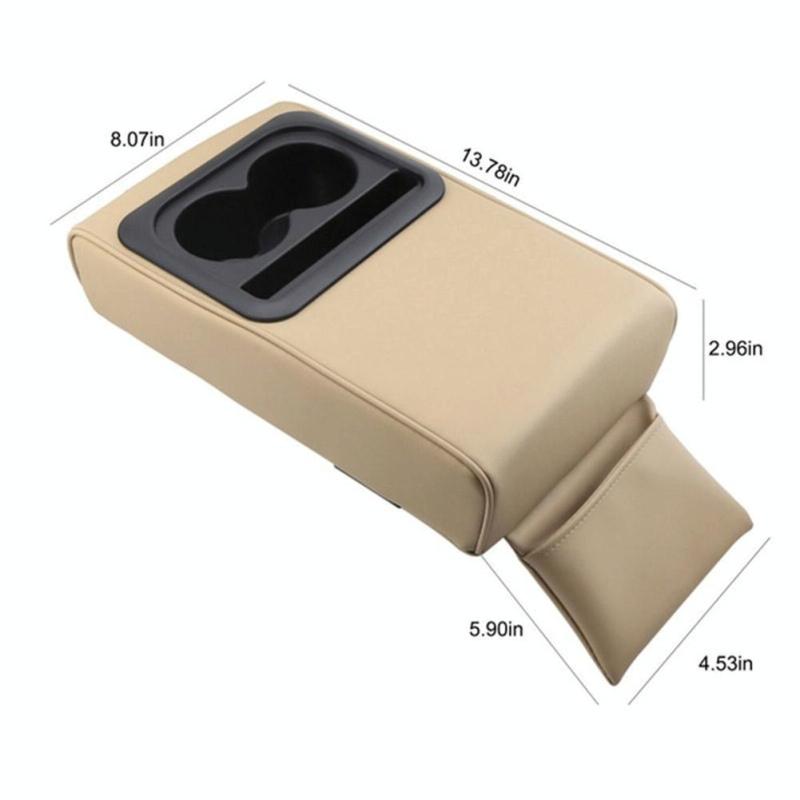 Car Armrest Box Increased Support With Rear Seat Water Cup Holder(Beige)