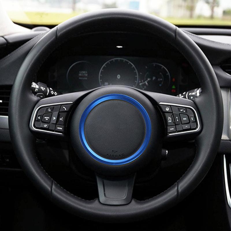 Car Auto Steering Wheel Aluminum Alloy Ring Cover Trim Sticker Decoration for Jaguar(Blue)