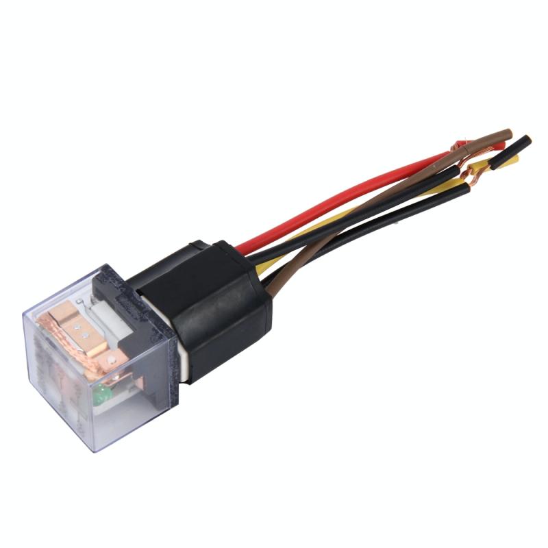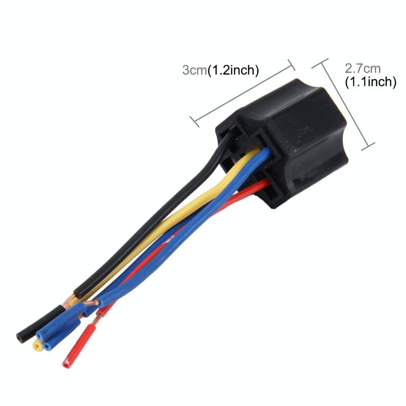 3. Wire Specifications: Black - Ground (85), Red - VDC (30), White - Trigger (86), Yellow - Output N/C (87a), and Blue - Output N/O (87).