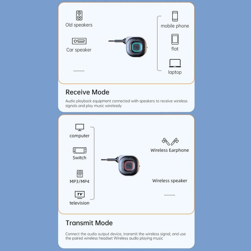 3. Suitable for: computer, TV, projector (transmitter mode)/car, speaker, headset (receiver mode)