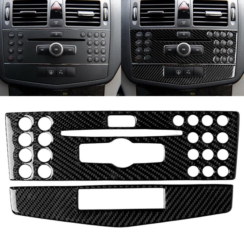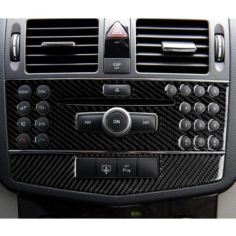 Car Carbon Fiber Center Console Panel Decorative Sticker for Mercedes-Benz W204 C Class 2007-2010