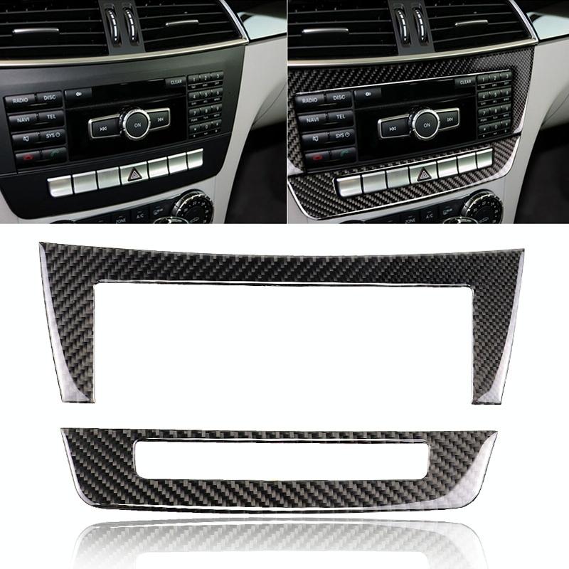 Car Carbon Fiber Central Control CD Panel Decorative Sticker for Mercedes-Benz W204 2011-2013 7-buttons