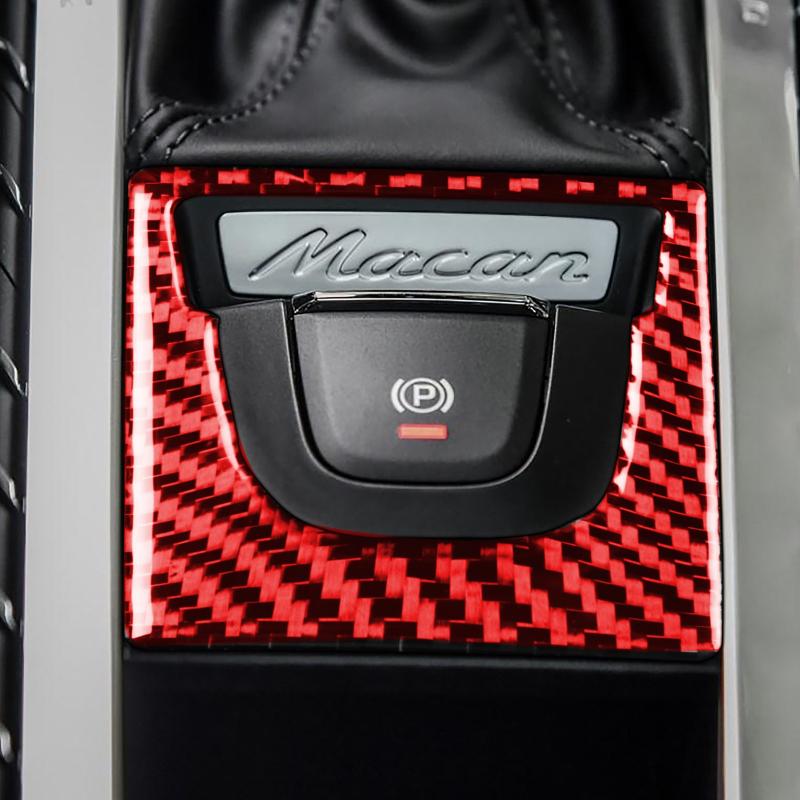 Car Carbon Fiber Electronic Handbrake Panel Decorative Sticker for Porsche Macan 2014-2021, Left and Right Drive Universal (Red)
