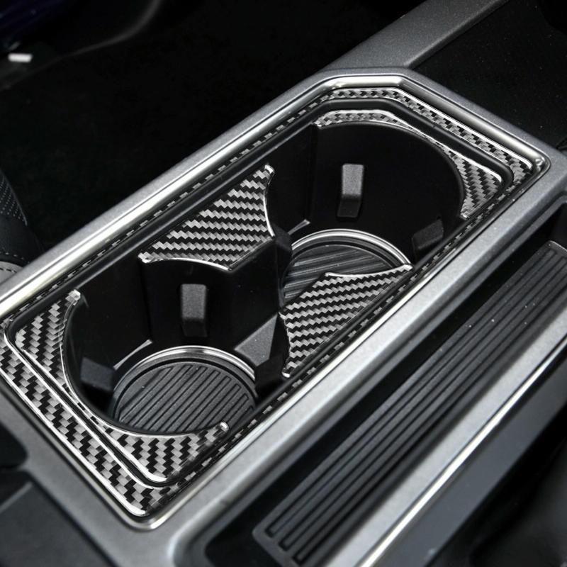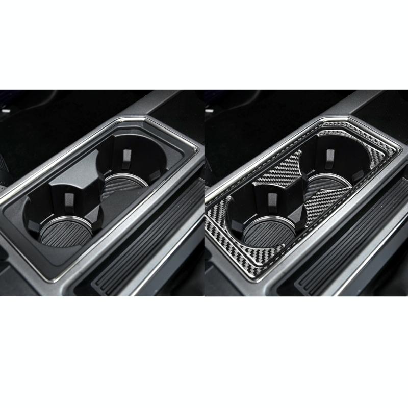 Car Carbon Fiber Front Water Cup Holder Frame Decorative Sticker for Ford F150 2017-2020, Right Drive