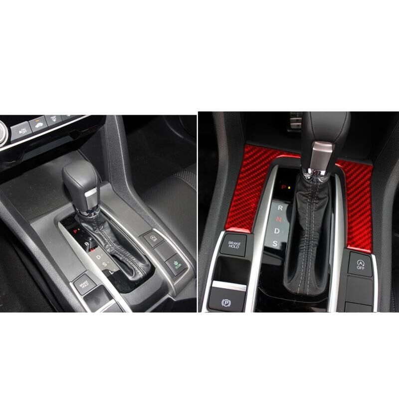 Car Carbon Fiber Gear Decorative Sticker for Honda Tenth Generation Civic 2016-2019, Left and Right Drive Universal (Red)