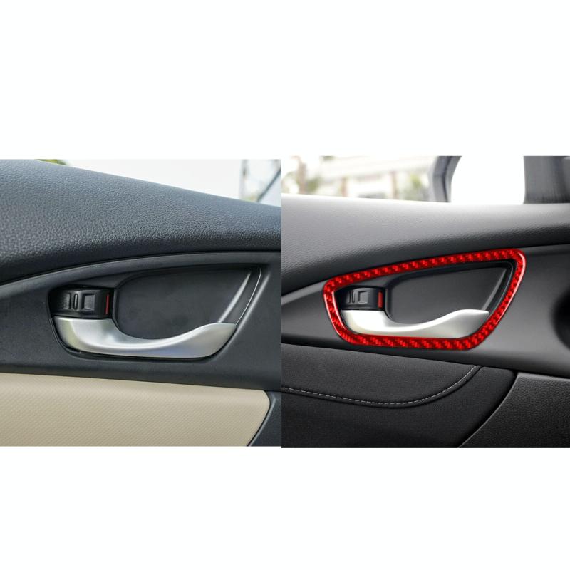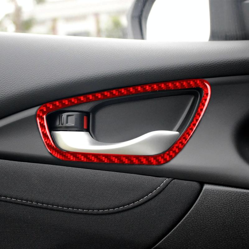 Car Carbon Fiber Inside Door Wrist Frame Decorative Sticker for Honda Tenth Generation Civic 2016-2019, Left and Right Drive Universal (Red)