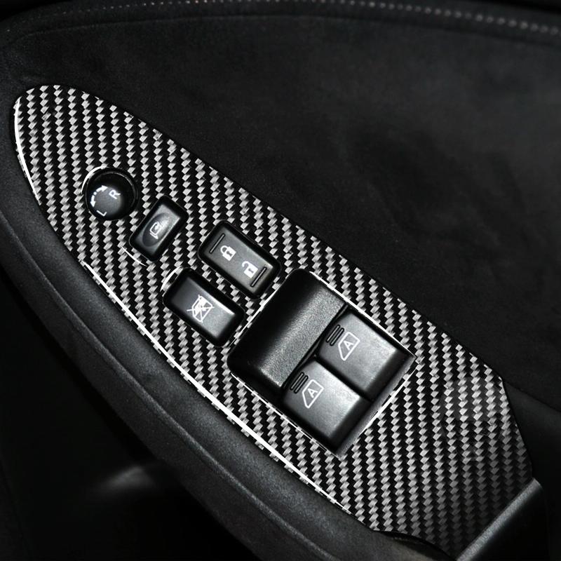 Car Carbon Fiber Main Driving Side Door Lift Control Decorative Sticker for Nissan 370Z Z34 2009-, Right Drive Low-configured