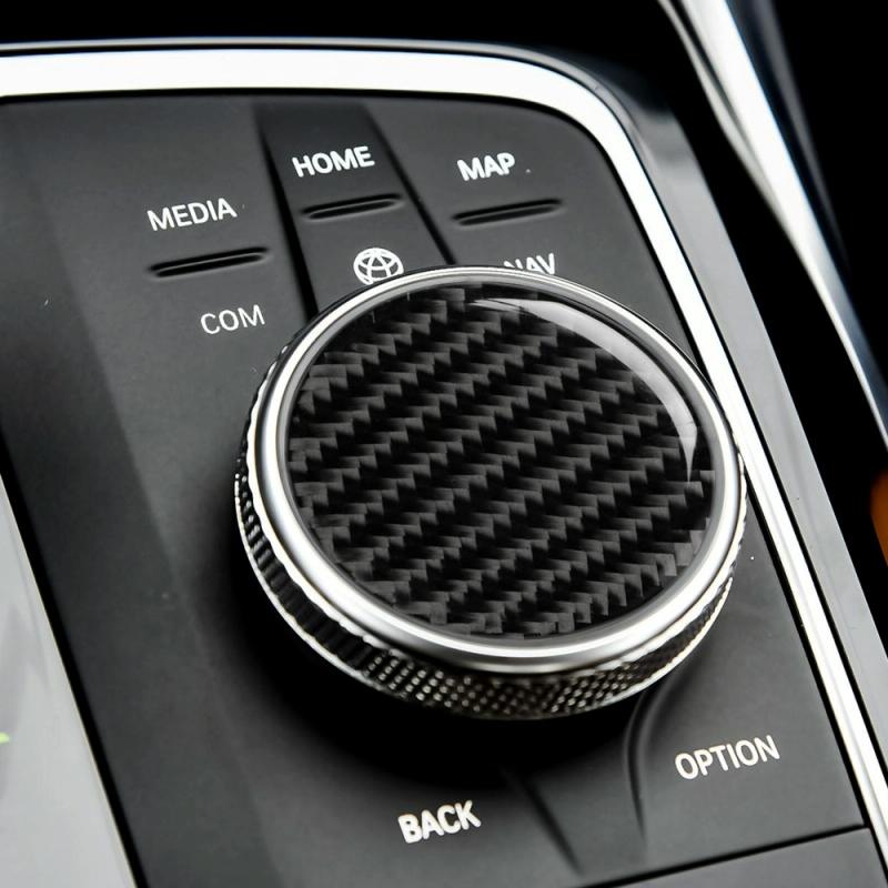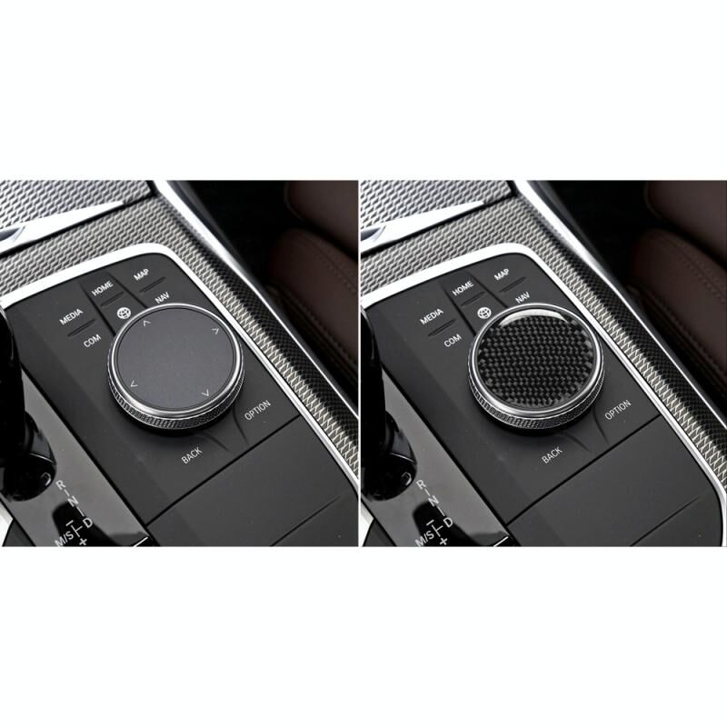 Car Carbon Fiber Multimedia Knob Decorative Sticker for BMW 3 Series G20/G28/325Li/330d/335 2019-2020, Left and Right Drive Universal
