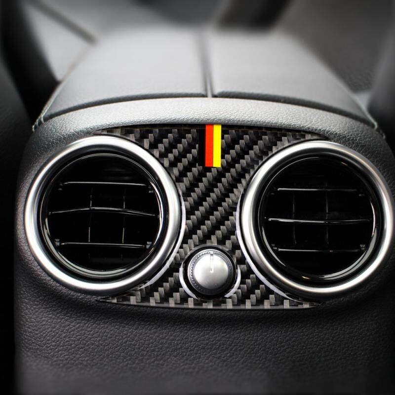Car Carbon Fiber Rear Air Outlet Middle Decorative Sticker for Mercedes-Benz C Class W205 C180 C200 C300 GLC, Left and Right Drive Universal(German Color)