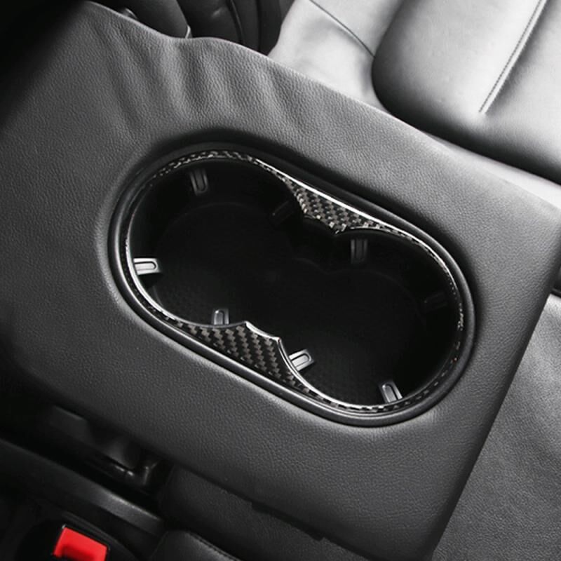 Car Carbon Fiber Rear Armrest Water Cup Holder Panel Decorative Sticker for Volkswagen Touareg 2011-2018