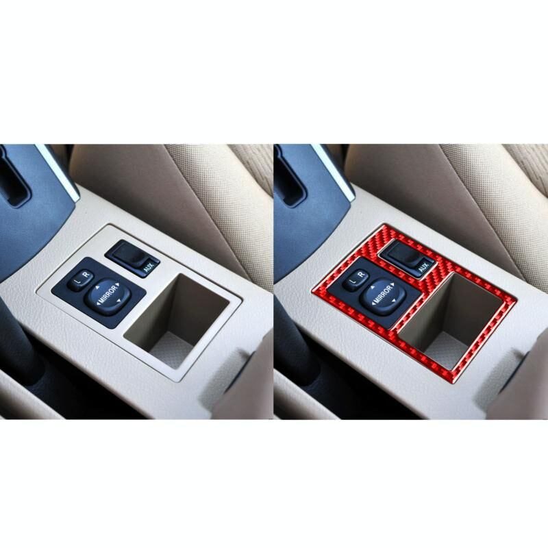 Car Carbon Fiber Rear Mirror Adjustment Switch Frame Decorative Sticker for Toyota RAV4 2006-2013, Left Drive (Red)