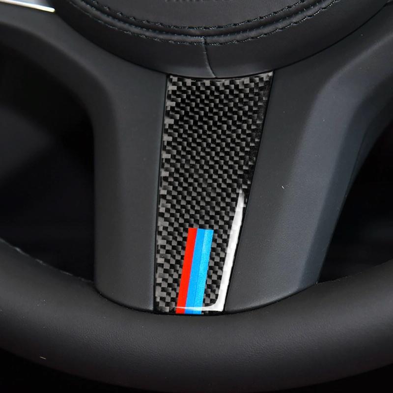 Car Carbon Fiber Steering Wheel 3-color Decorative Sticker for BMW G01 X3 2018-2020 / G02 X4 2019-2020, Left and Right Drive Universal