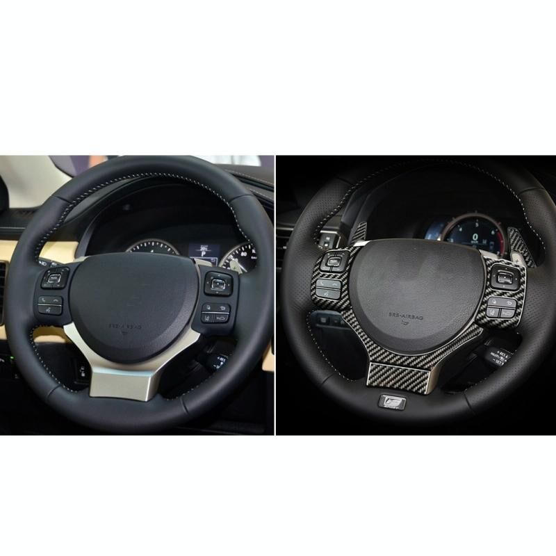 Car Carbon Fiber Steering Wheel Button Decorative Sticker for Lexus NX200 / 200t / 300h 2014-2021, Left and Right Drive Universal