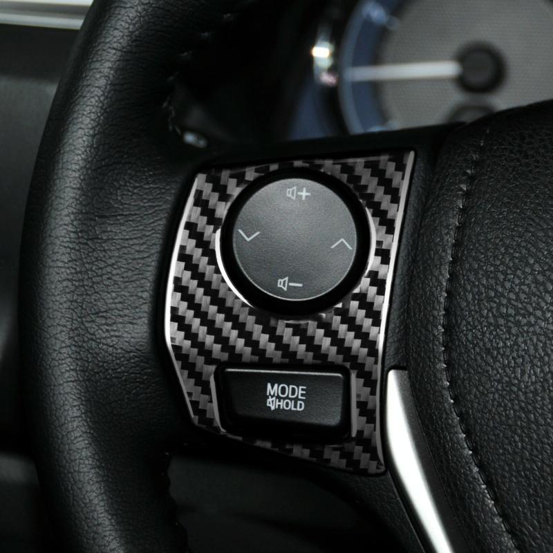 Car Carbon Fiber Steering Wheel Button Frame Decorative Sticker for Toyota Corolla / Levin 2014-2018, Left and Right Drive Universal