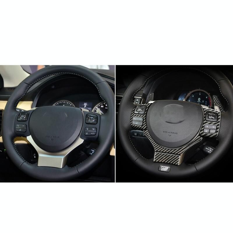 Car Carbon Fiber Steering Wheel Sets Decorative Sticker for Lexus NX200 / 200t / 300h 2014-2021, Left and Right Drive Universal