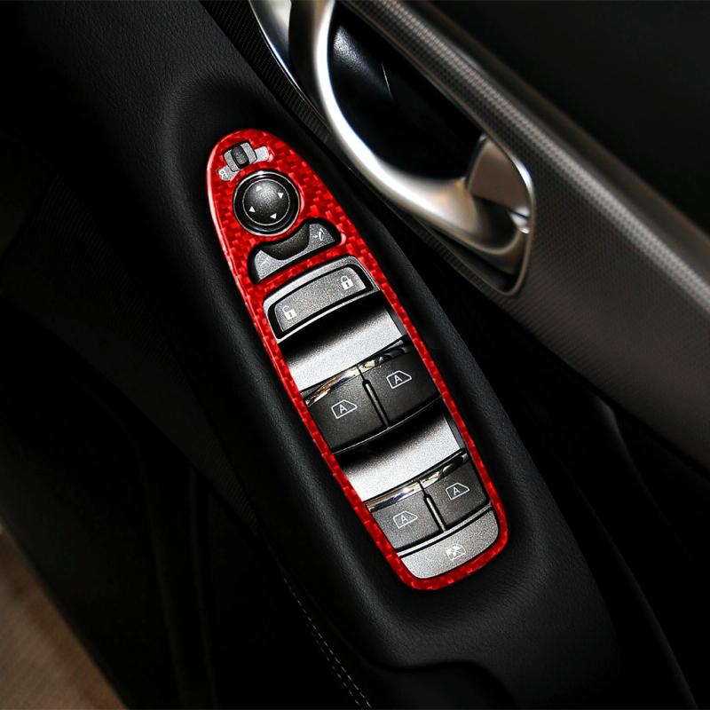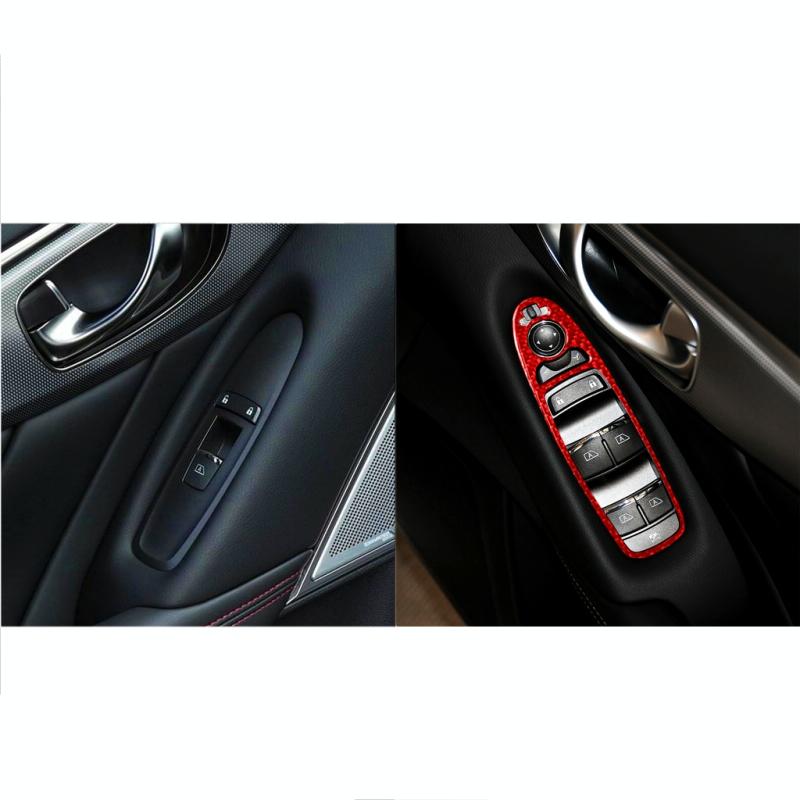 Car Carbon Fiber Window Glass Lift Panel Decorative Sticker for Infiniti Q60, Right Drive(Red)